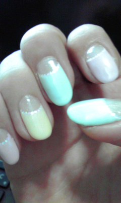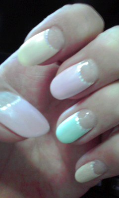 今回はパステル3色を各指に逆フレンチで。