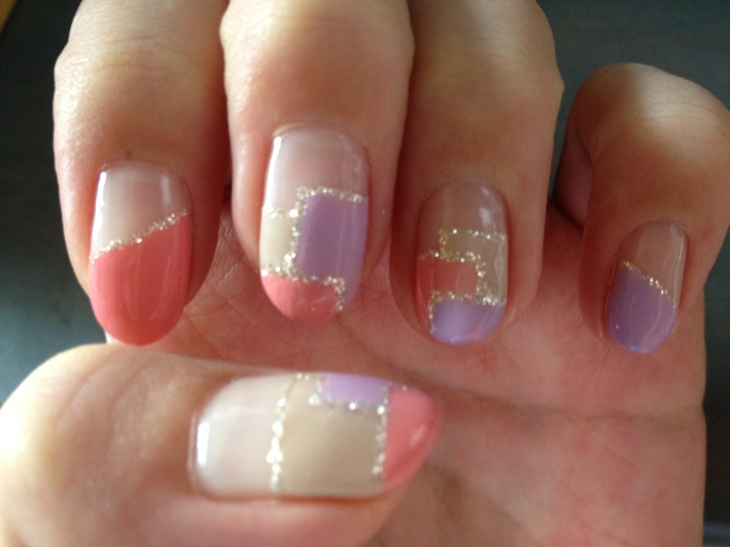 パープル、ベージュ、コーラルピンクを使って、