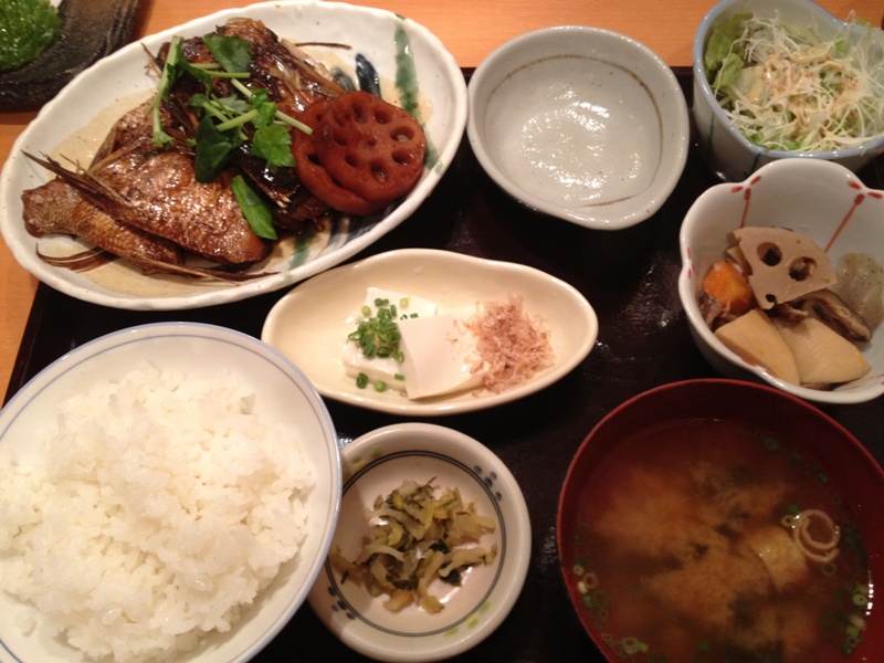 私はあらの煮付け定食。お魚おいしー。