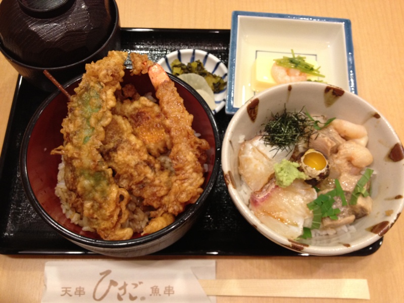 ミニ海鮮丼とミニ天丼のセット。