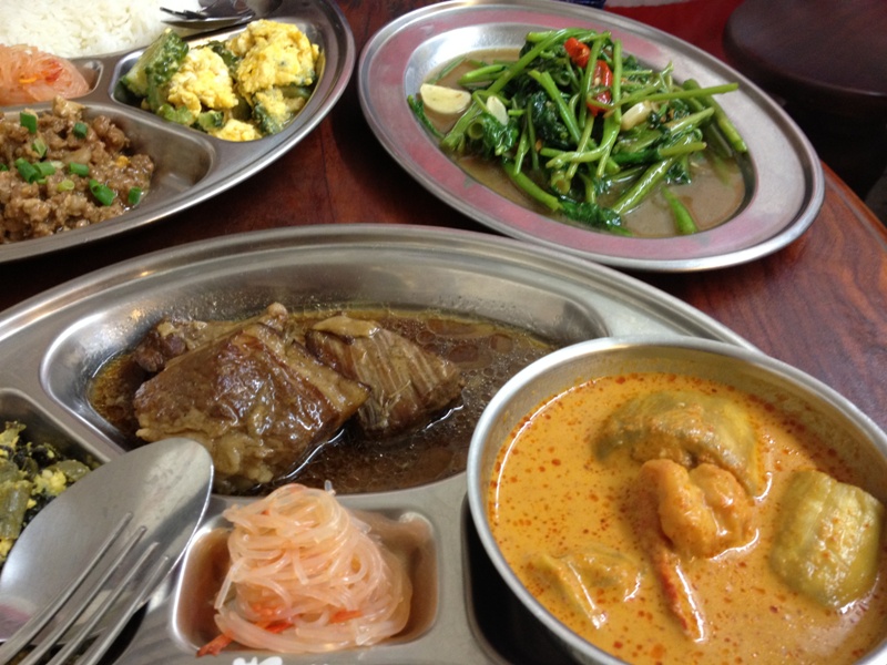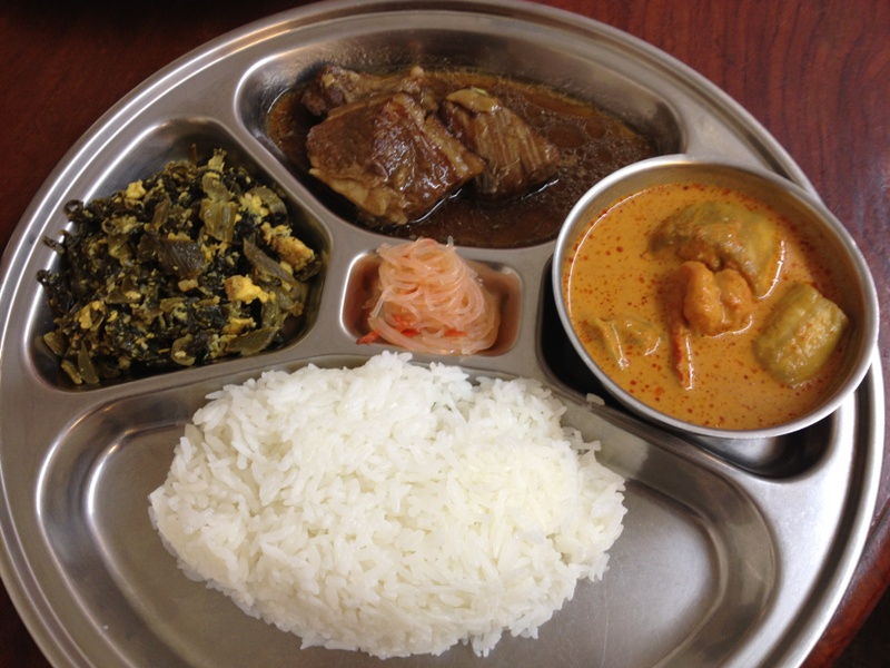 私の頼んだプレートは、カレー、豚の角煮、高菜の炒め物。